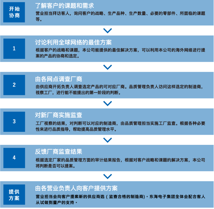 详细了解客户的课题和要求,通过遍布全球的网络提供最佳的供应商组合。本公司在全世界的各网点利用当地信息网来收集其所在国家的最新技术和产品等信息,在采购高性价比的海外产品方面发挥优势,可及时提供客户所需的产品和技术。