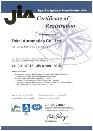 Tokai Automatics Co., Ltd. has obtained ISO9001:2015, an international standard for quality management.